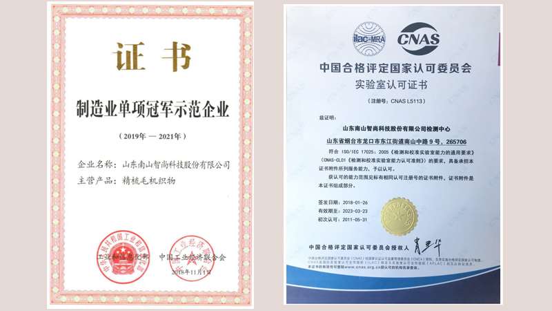 In August 2003, Nanshan worsted products won the title of Shandong famous brand for the first time, and was awarded the "development base of high count pure wool products" by the national textile product development center for the first time. In September, Nanshan worsted products won the title of China famous brand.
